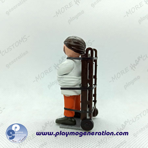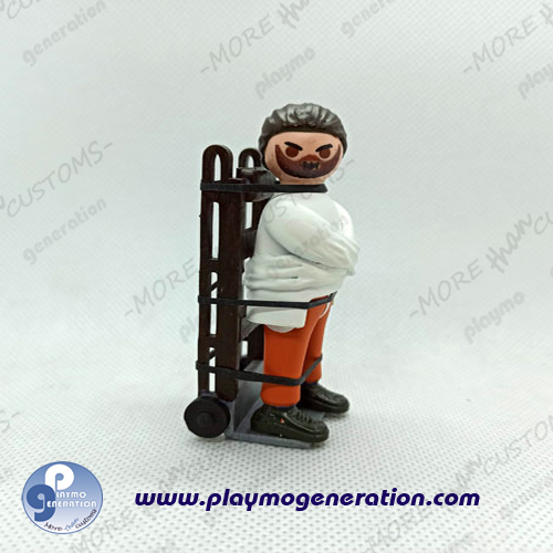 INCLUYE: 1 Playmobil personalizado de Hannibal Lecter (Según foto). Realizado de manera artesanal, moldeado con masilla y diseño de camilla en resina exclusivo de Playmo Generation. Se pinta a mano de manera individual.