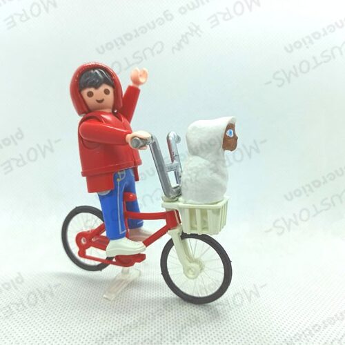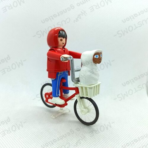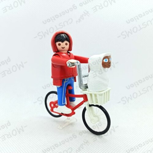 INCLUYE: 1 Playmobil personalizado de Elliot +bicicleta Kuwuahara roja con cesta y +E.T. El Extraterrestre (Según foto). Realizado de manera artesanal con masilla, moldeando su cabecita de uno en uno , pinturas y resina.* (diseño exclusivo de Playmobil Personalizado Playmo Generation)*